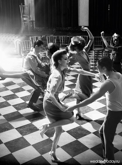 Стиль такой свадьбы должен сохраняться во всем, поэтому заранее продумайте, какая музыка будет на вечере. Стандартное музыкальное сопровождение не должно звучать в зале. Стиляги слушали рок-н-ролл, джаз, буги-вуги, блюз. Музыку надо подбирать зажигательную, чтоб она вызывала желание не просто двигаться, а забыться в веселом танце.